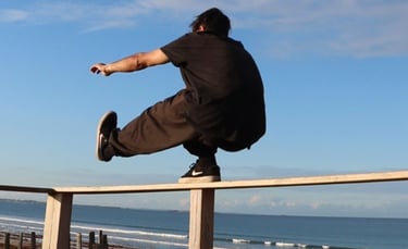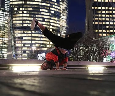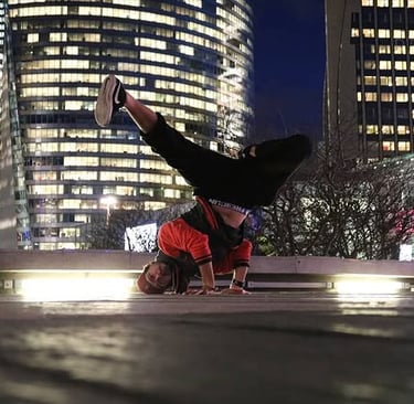 Je m'appelle Gaëtan, originaire des montagnes jurassiennes. Le mouvement a toujours fait partie de ma vie : le ski, le skate et les sports de montagne. Mais il me manquait quelque chose, une façon de bouger différente, plus complète, plus artistique. La danse est entrée dans ma vie à l’âge de 16 ans, en même temps que le parkour et l’acrobatie. C’est à la suite d’une grave blessure que je me suis vraiment intéressé à tout ce qui concerne le renforcement musculaire et la préparation du corps sous tous ses angles : d’abord pour retrouver mon niveau physique, puis pour continuer à progresser.